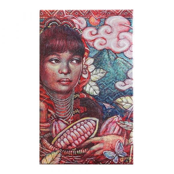 The beautiful art used on the cover of the bar was painted by Filipino-Canadian artist Charlie Frenal. Born in Polomolok, South Cotabato, Philippines, Charlie currently resides in Vancouver BC and has won multiple awards for his artwork that highlights Filipino culture and the beauty of nature.