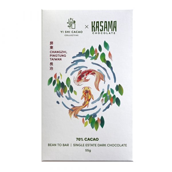 This chocolate bar is a collaboration between Kasama and YI SHI Cacao. It features cacao beans sourced from a single estate: Maya Farm in Pingtung, Taiwan.