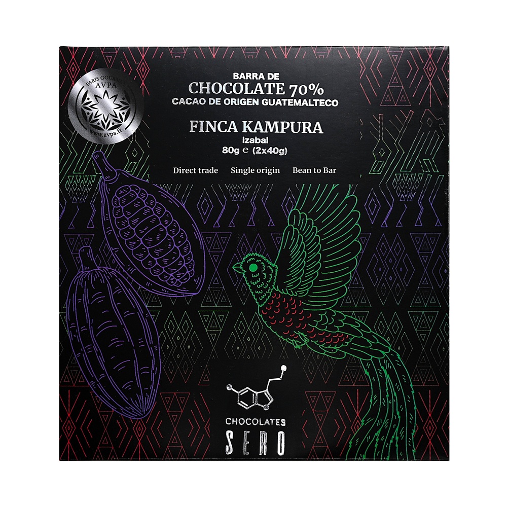 This chocolate from Chocolates SERO is made from fine-flavored cocoa from the Finca Kampura in the Izabal province of Guatemala – one of the country’s most renowned cocoa sources.